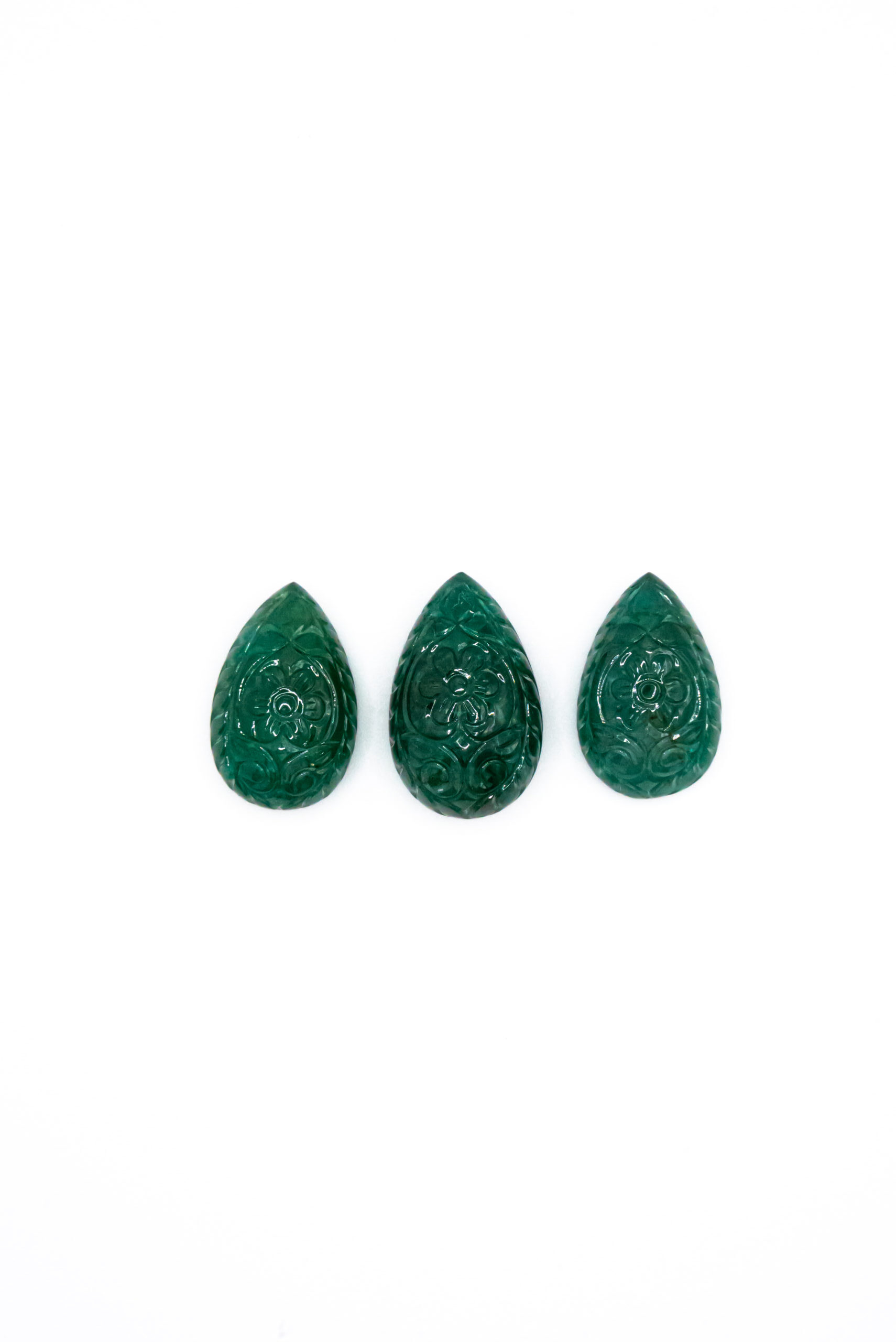 Carved Pear Emeralds set of 3 26.00 x 16.30 mm – 35 Carats